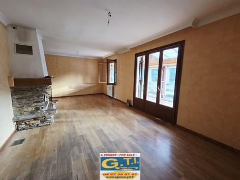 abritée par une véranda récente, séjour avec cheminée et