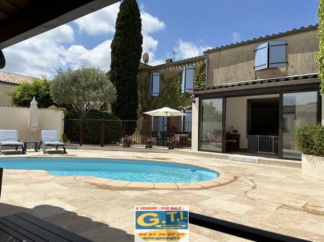 garage 30 m². Terrasse couverte avec BBQ et local piscine.