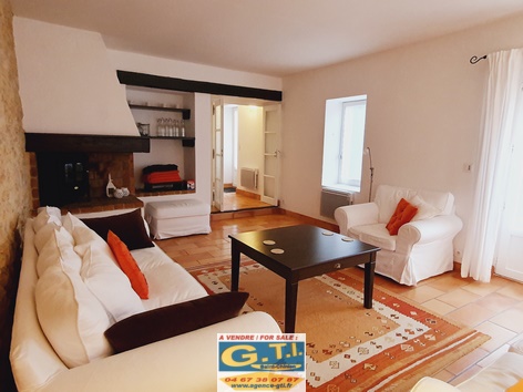 séjour de 43 m² avec cheminée et insert, poutres